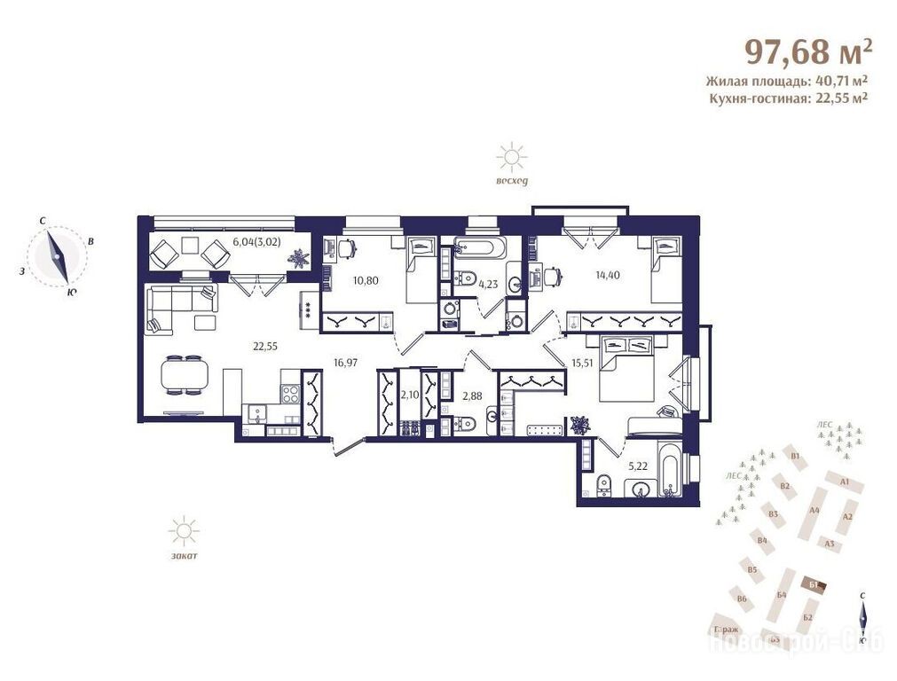 Продается трехкомнатная квартира в новостройке ЖК Ranta Residence (Ранта Резиденс) по адресу Санкт-Петербург, Курортный, Зеленогорск, Кривоносовская улица, 57, ЖК Ranta Residence, корпус Б1. Общая площадь квартиры - 97.68 кв. м. , компания-застройщик — LAR Development (ЛАР Девелопмент), Запстрой, СЗ Ранта Резиденс. Стоимость квартиры — 41 025 600 руб. Способы оплаты можно уточнить у продавца. Срок сдачи — 2 квартал 2026. Более подробная информация по телефону.