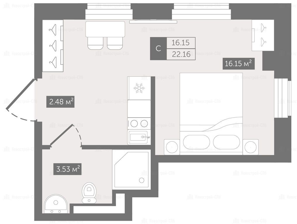 Продается помещение-студия в новостройке «Zoom Черная речка» (Зум Черная речка) по адресу Санкт-Петербург, Приморский, Набережная Черной речки. Общая площадь помещения - 22.16 кв. м. Тип проекта, по которому построен дом — Монолитно-каркасный, компания-застройщик — ГК ФСК. Стоимость помещения — 6 549 942 руб. Способы оплаты можно уточнить у продавца. Более подробная информация по телефону.