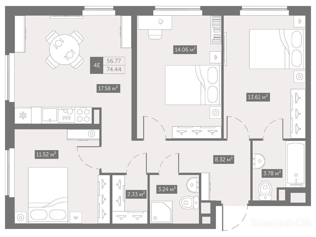 Продается трехкомнатное помещение в новостройке «Zoom на Неве» (Зум на Неве) по адресу Санкт-Петербург, Невский, Октябрьская набережная, 40А. Общая площадь помещения - 74.44 кв. м. Тип проекта, по которому построен дом — Кирпичный, компания-застройщик — ГК ФСК. Стоимость помещения — 10 046 422 руб. Способы оплаты можно уточнить у продавца. Срок сдачи — 2 квартал 2026. Более подробная информация по телефону.
