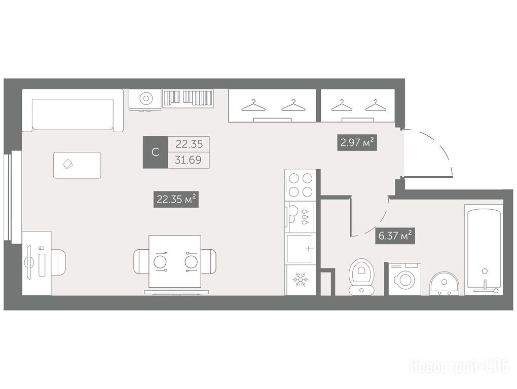 помещение-студия, 31.40 м2, 5 этаж