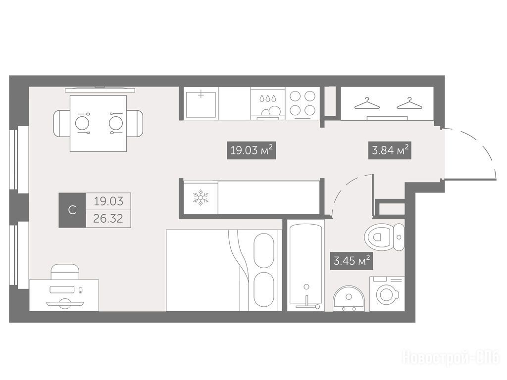 Продается помещение-студия в новостройке «Zoom на Неве» (Зум на Неве) по адресу Санкт-Петербург, Невский, Октябрьская набережная, 40А. Общая площадь помещения - 26.32 кв. м. Тип проекта, по которому построен дом — Кирпичный, компания-застройщик — ГК ФСК. Стоимость помещения — 4 801 294 руб. Способы оплаты можно уточнить у продавца. Срок сдачи — 2 квартал 2026. Более подробная информация по телефону.