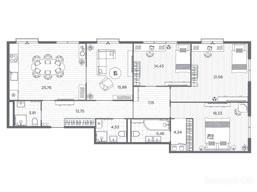 Комплекс получился красивым, статным, причем и снаружи, и изнутри. Был в качестве гостя, оценил оформление парадной, планировку, виды из окна. Хотел бы я жить в таком доме и в такой просторной трехкомнатной с балконом.
