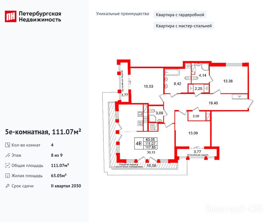 Продается четырехкомнатная квартира в новостройке ЖК «Кристалл Холл» по адресу Санкт-Петербург, Адмиралтейский, Рижский проспект, 26Б, корпус 1. Общая площадь квартиры - 111.07 кв. м. Тип проекта, по которому построен дом — Монолитно-кирпичный, компания-застройщик — Setl Group (Сэтл Групп), СЗ «Рижский 26». Стоимость квартиры — 63 976 320 руб. Способы оплаты можно уточнить у продавца. Срок сдачи — 2 квартал 2030. Более подробная информация по телефону.