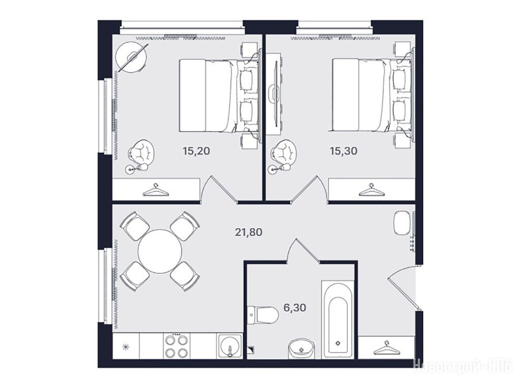 присмотрел себе двухкомнатный юнит, отличный метраж около 50 квадратов, хорошая планировка. после получения ключей все будет готово, можно сразу сдавать. но я посмотрю, может сам еще поживу))