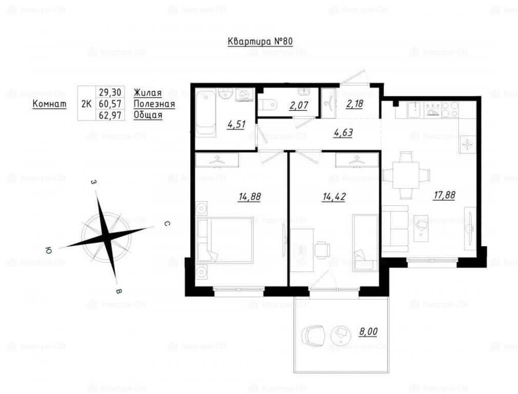 Продается двухкомнатная квартира в новостройке ЖК «Счастье 2.0» по адресу Ленинградская область, Тосненский район, Федоровское, Счастливая улица, 5к2. Общая площадь квартиры - 62.97 кв. м. Тип проекта, по которому построен дом — Монолит, компания-застройщик — ЛенСтройГрад. Стоимость квартиры — 10 106 685 руб. Способы оплаты можно уточнить у продавца. Более подробная информация по телефону.