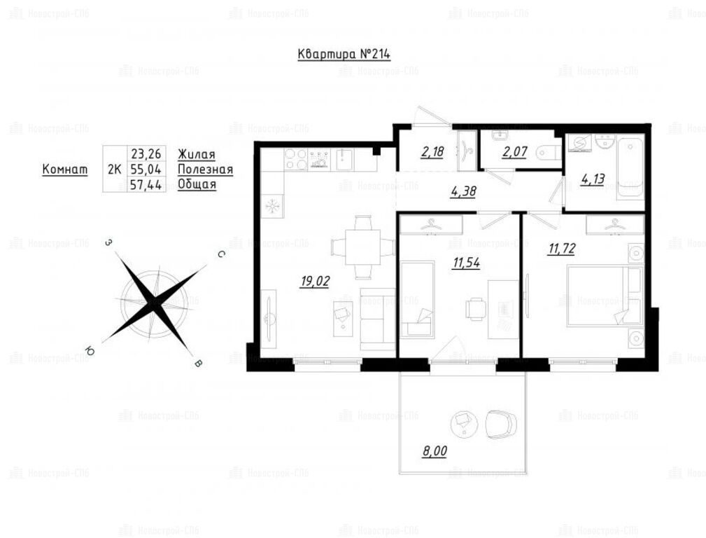 Продается двухкомнатная квартира в новостройке ЖК «Счастье 2.0» по адресу Ленинградская область, Тосненский район, Федоровское, МЖК «Счастье 2.0», 3 очередь, корпус 2. Общая площадь квартиры - 57.44 кв. м. Тип проекта, по которому построен дом — Монолит, компания-застройщик — ЛенСтройГрад. Стоимость квартиры — 8 874 480 руб. Способы оплаты можно уточнить у продавца. Более подробная информация по телефону.