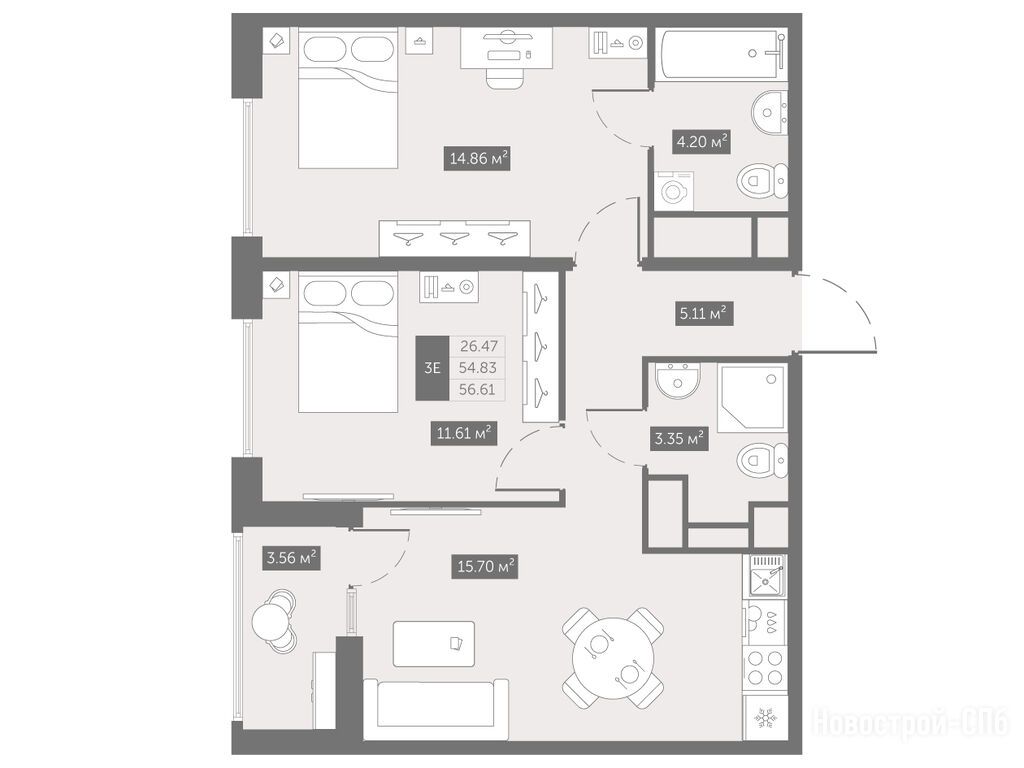 2-комн. квартира 54,93 м2 7 399 895