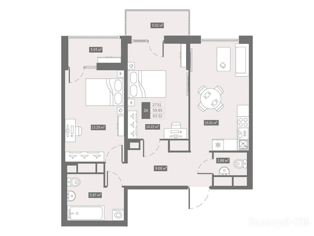 Продается двухкомнатная квартира в новостройке Квартал «Новый Московский» по адресу Санкт-Петербург, Пушкинский, Шушары пос., Московское шоссе, дом 323, строение 1. Общая площадь квартиры - 62.7 кв. м. Тип проекта, по которому построен дом — Монолит, компания-застройщик — ГК ФСК. Стоимость квартиры — 10 077 144 руб. Способы оплаты можно уточнить у продавца. Более подробная информация по телефону.
