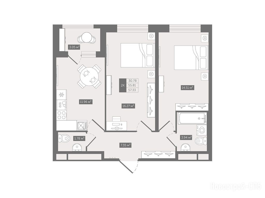Продается двухкомнатная квартира в новостройке UP-квартал «Воронцовский» по адресу Ленинградская область, Всеволожский район, д. Новое Девяткино, корпус А. Общая площадь квартиры - 57.33 кв. м. Тип проекта, по которому построен дом — Монолитно-кирпичный, компания-застройщик — ГК ФСК. Стоимость квартиры — 7 873 702 руб. Способы оплаты можно уточнить у продавца. Срок сдачи — 2 квартал 2026. Более подробная информация по телефону.