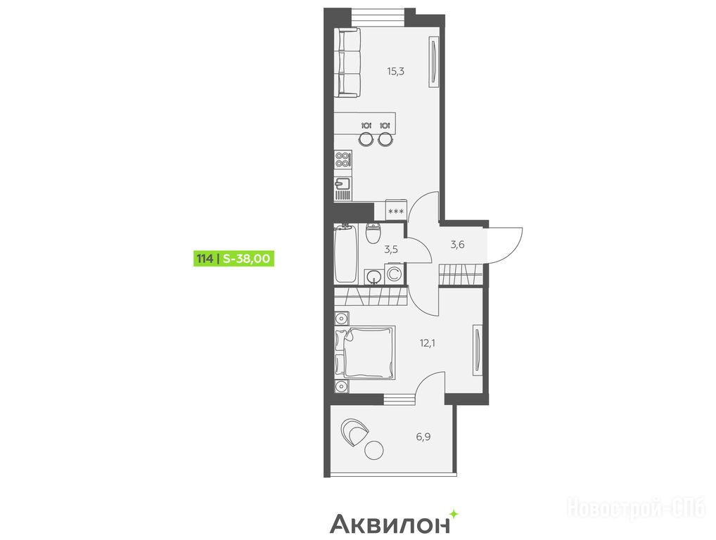 Продается двухкомнатная квартира в новостройке ЖК «Аквилон Stories» (Аквилон Сторис) по адресу Ленинградская область, Всеволожский район, Кудрово, проспект Строителей. Общая площадь квартиры - 38 кв. м. Тип проекта, по которому построен дом — Монолитно-кирпичный, компания-застройщик — Группа «Аквилон». Стоимость квартиры — 10 053 397 руб. Способы оплаты можно уточнить у продавца. Более подробная информация по телефону.