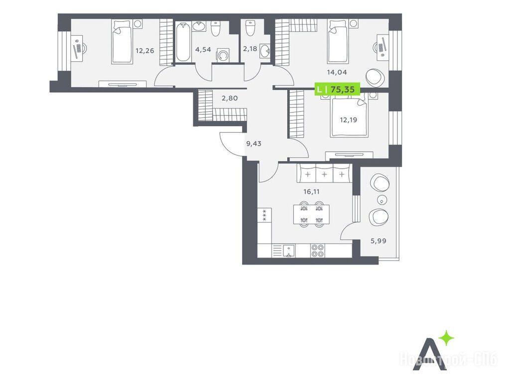Продается двухкомнатная квартира в новостройке ЖК «Аквилон Verba» по адресу Ленинградская область, Всеволожский район, Ленинградская область, Всеволожский район, д. Янино-1. Общая площадь квартиры - 76.18 кв. м. Тип проекта, по которому построен дом — Монолитно-кирпичный, компания-застройщик — Группа «Аквилон». Стоимость квартиры — 12 798 233 руб. Способы оплаты можно уточнить у продавца. Срок сдачи — 2 квартал 2027. Более подробная информация по телефону.