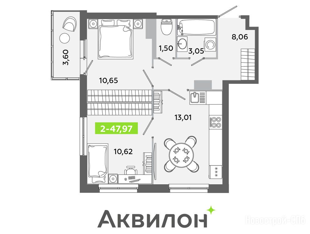 Продается двухкомнатная квартира в новостройке ЖК «Аквилон ЯНИНО» по адресу Ленинградская область, Всеволожский район, Ленинградская область, гп Янино-1, Заводская улица. Общая площадь квартиры - 47.97 кв. м. Тип проекта, по которому построен дом — Монолитно-кирпичный, компания-застройщик — Группа «Аквилон». Стоимость квартиры — 9 647 107 руб. Способы оплаты можно уточнить у продавца. Срок сдачи — 4 квартал 2026. Более подробная информация по телефону.