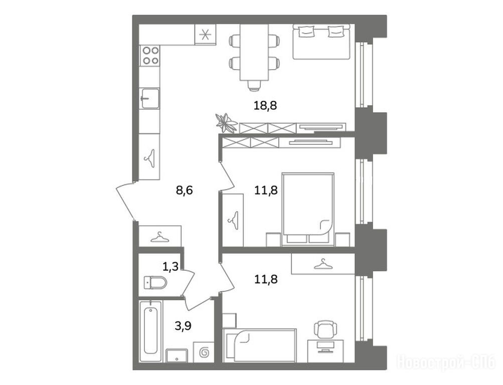 Продается двухкомнатная квартира в новостройке ЖК «Антверпен» по адресу Санкт-Петербург, Фрунзенский, ул. Купчинская, корп. Б. Общая площадь квартиры - 56.2 кв. м. Тип проекта, по которому построен дом — Монолитно-кирпичный, компания-застройщик — Л1. Стоимость квартиры — 16 907 777 руб. Способы оплаты можно уточнить у продавца. Срок сдачи — 2 квартал 2029. Более подробная информация по телефону.
