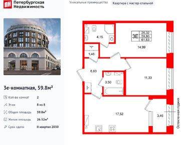 Продается двухкомнатная квартира в новостройке ЖК «Аристократ» по адресу Санкт-Петербург, Василеостровский, 26-я линия В.О., д. 1, литера А, корпус 1. Общая площадь квартиры - 55.78 кв. м. Тип проекта, по которому построен дом — Монолитно-кирпичный, компания-застройщик — Setl Group (Сэтл Групп), СЗ «Остров Сити». Стоимость квартиры — 34 639 380 руб. Способы оплаты можно уточнить у продавца. Срок сдачи — 2 квартал 2030. Более подробная информация по телефону.