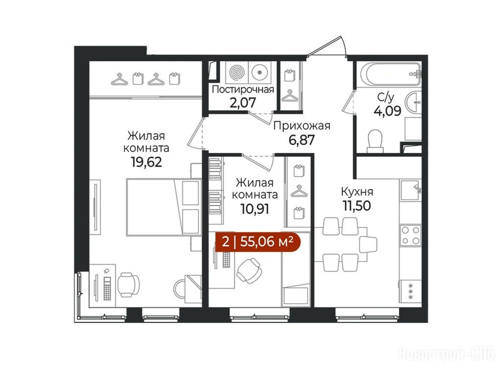 Продается двухкомнатная квартира в новостройке ЖК «Арт Парк» по адресу Ленинградская область, Всеволожский район, Щеглово, обл. Ленинградская, р-н. Всеволожский, п. Щеглово, участок. 42. Общая площадь квартиры - 55.06 кв. м. Тип проекта, по которому построен дом — Панельный, компания-застройщик — Алгоритм Девелопмент. Стоимость квартиры — 7 763 460 руб. Способы оплаты можно уточнить у продавца. Срок сдачи — 1 квартал 2026. Более подробная информация по телефону.