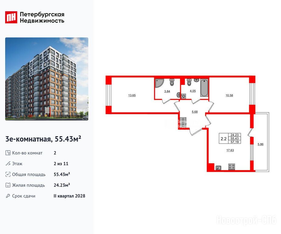 Продается двухкомнатная квартира в новостройке ЖК «Астра Континенталь» по адресу Санкт-Петербург, Невский, пр-кт Обуховской Обороны / Большой Смоленский пр-кт. Общая площадь квартиры - 55.43 кв. м. Тип проекта, по которому построен дом — Монолитно-каркасный, компания-застройщик — Setl Group (Сэтл Групп). Стоимость квартиры — 21 000 321 руб. Способы оплаты можно уточнить у продавца. Срок сдачи — 2 квартал 2028. Более подробная информация по телефону.