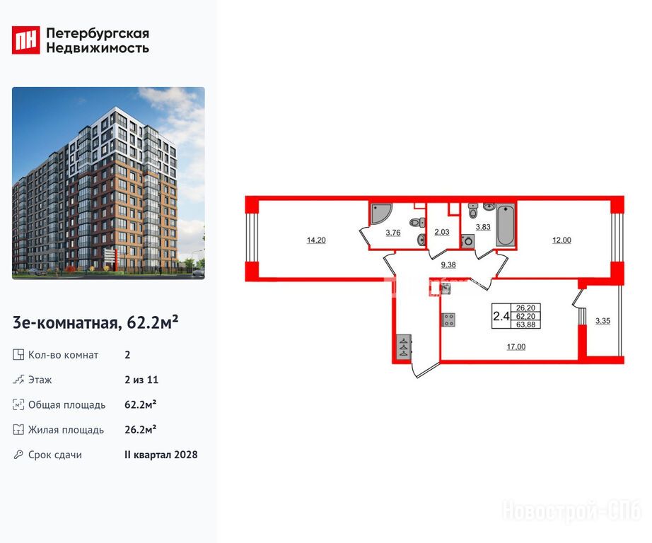 Продается двухкомнатная квартира в новостройке ЖК «Астра Континенталь» по адресу Санкт-Петербург, Невский, пр-кт Обуховской Обороны / Большой Смоленский пр-кт. Общая площадь квартиры - 62.2 кв. м. Тип проекта, по которому построен дом — Монолитно-каркасный, компания-застройщик — Setl Group (Сэтл Групп). Стоимость квартиры — 23 100 489 руб. Способы оплаты можно уточнить у продавца. Срок сдачи — 2 квартал 2028. Более подробная информация по телефону.