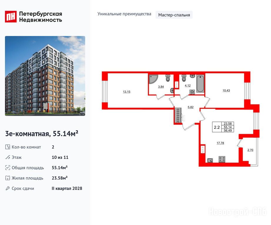 Продается двухкомнатная квартира в новостройке ЖК «Астра Континенталь» по адресу Санкт-Петербург, Невский, пр-кт Обуховской Обороны / Большой Смоленский пр-кт. Общая площадь квартиры - 55.14 кв. м. Тип проекта, по которому построен дом — Монолитно-каркасный, компания-застройщик — Setl Group (Сэтл Групп). Стоимость квартиры — 19 500 410 руб. Способы оплаты можно уточнить у продавца. Срок сдачи — 2 квартал 2028. Более подробная информация по телефону.