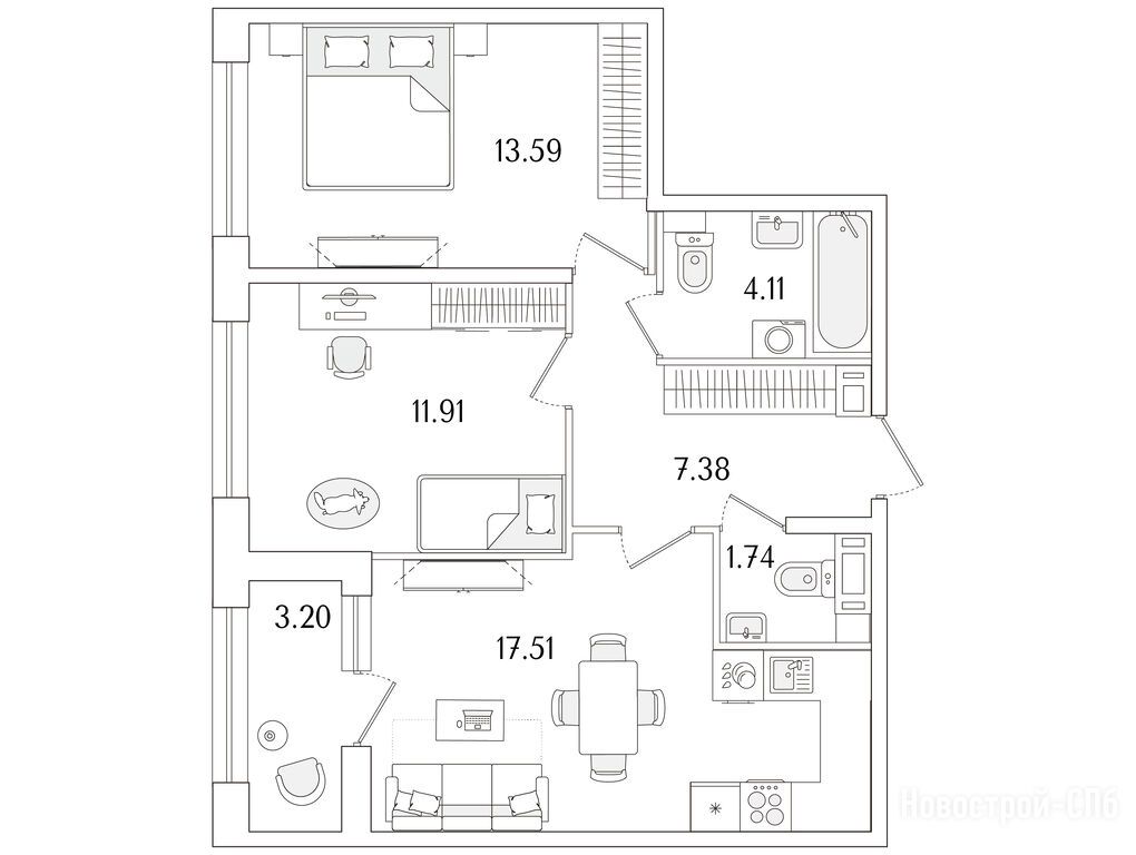 Продается двухкомнатная квартира в новостройке ЖК «Аурум» по адресу Санкт-Петербург, Калининский, Кондратьевский проспект, 60. Общая площадь квартиры - 57.84 кв. м. Тип проекта, по которому построен дом — Монолитно-кирпичный, компания-застройщик — ГК РСТИ (РосСтройИнвест). Стоимость квартиры — 20 445 955 руб. Способы оплаты можно уточнить у продавца. Срок сдачи — 1 квартал 2029. Более подробная информация по телефону.