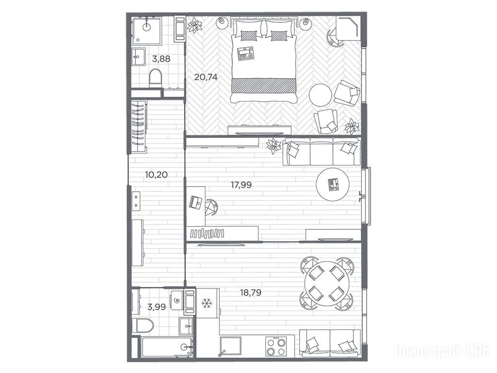 Комплекс получился красивым, статным, причем и снаружи, и изнутри. Был в качестве гостя, оценил оформление парадной, планировку, виды из окна. Хотел бы я жить в таком доме и в такой просторной трехкомнатной с балконом.