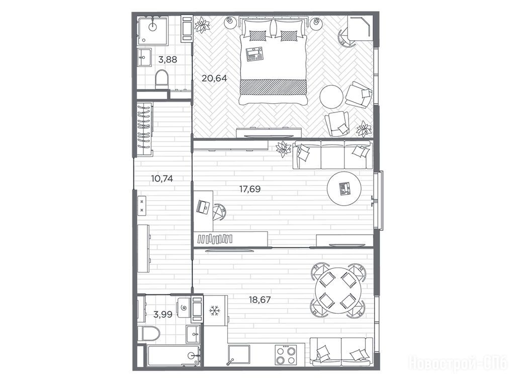 Комплекс получился красивым, статным, причем и снаружи, и изнутри. Был в качестве гостя, оценил оформление парадной, планировку, виды из окна. Хотел бы я жить в таком доме и в такой просторной трехкомнатной с балконом.