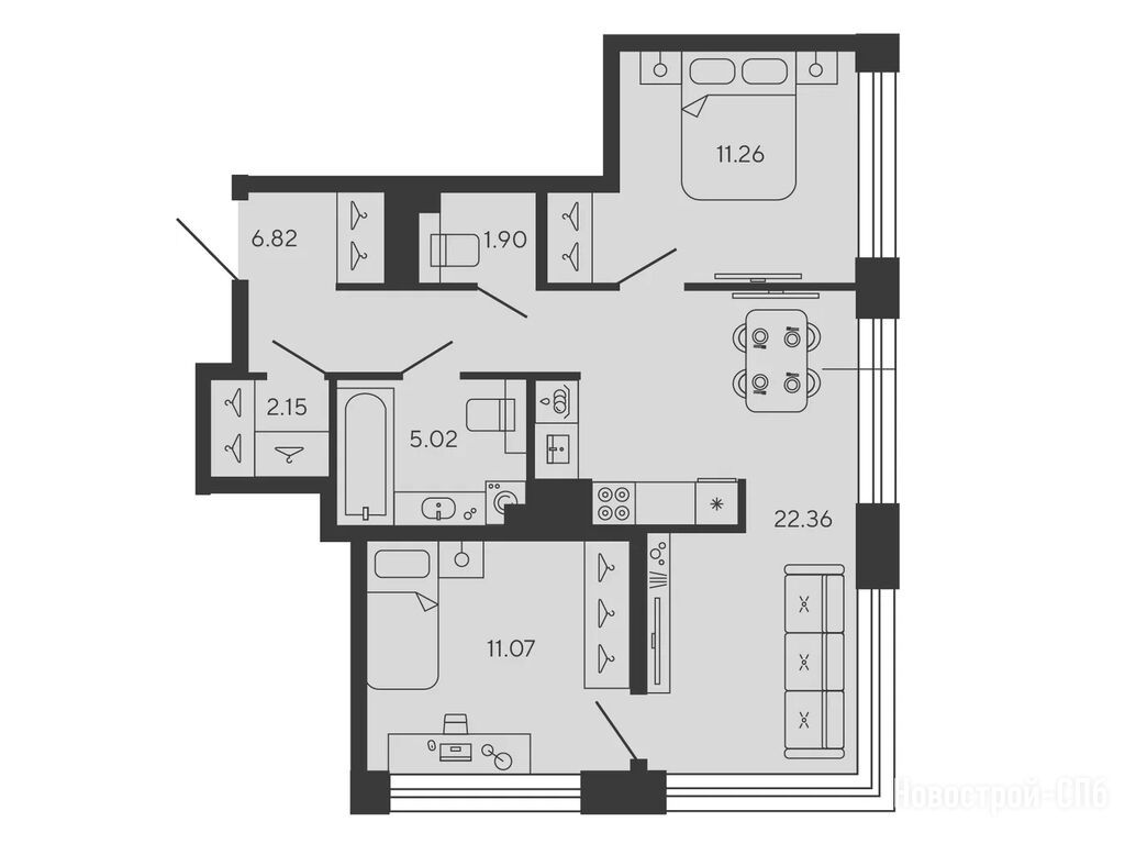 Здесь несколько башен с разными типами квартир, что позволяет выбрать что-то подходящее под свои нужды.