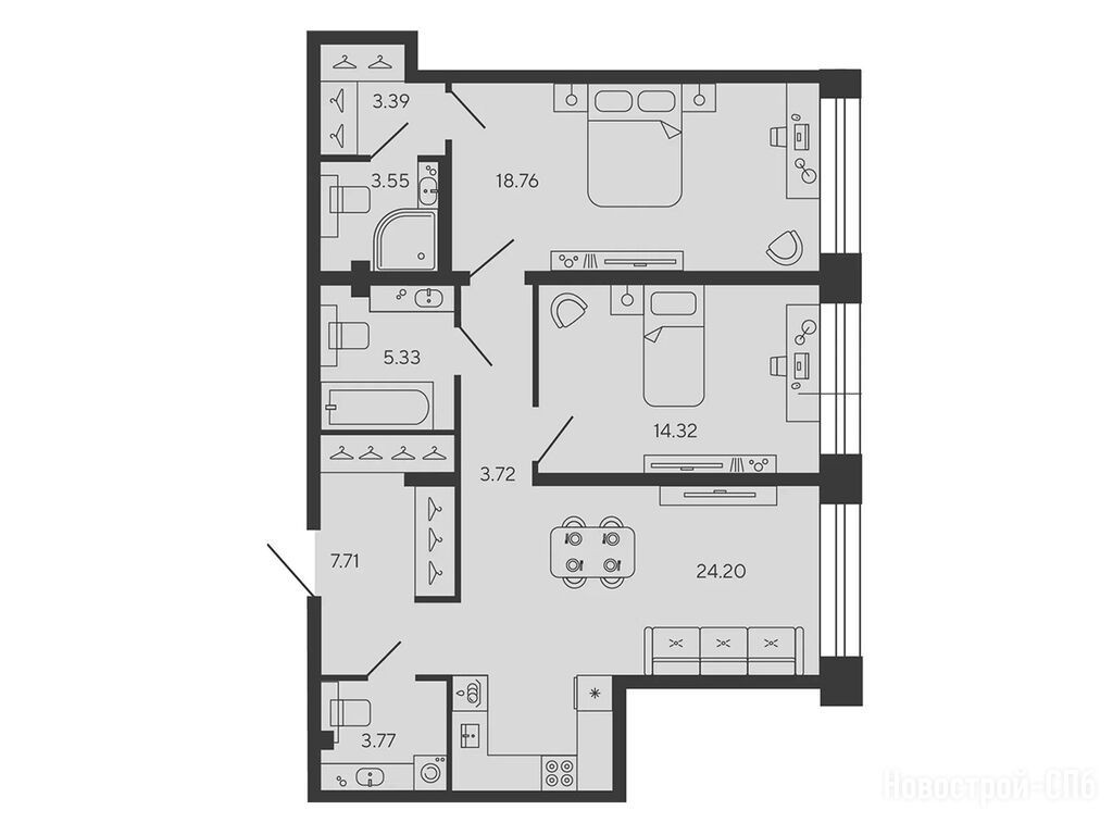 Здесь несколько башен с разными типами квартир, что позволяет выбрать что-то подходящее под свои нужды.