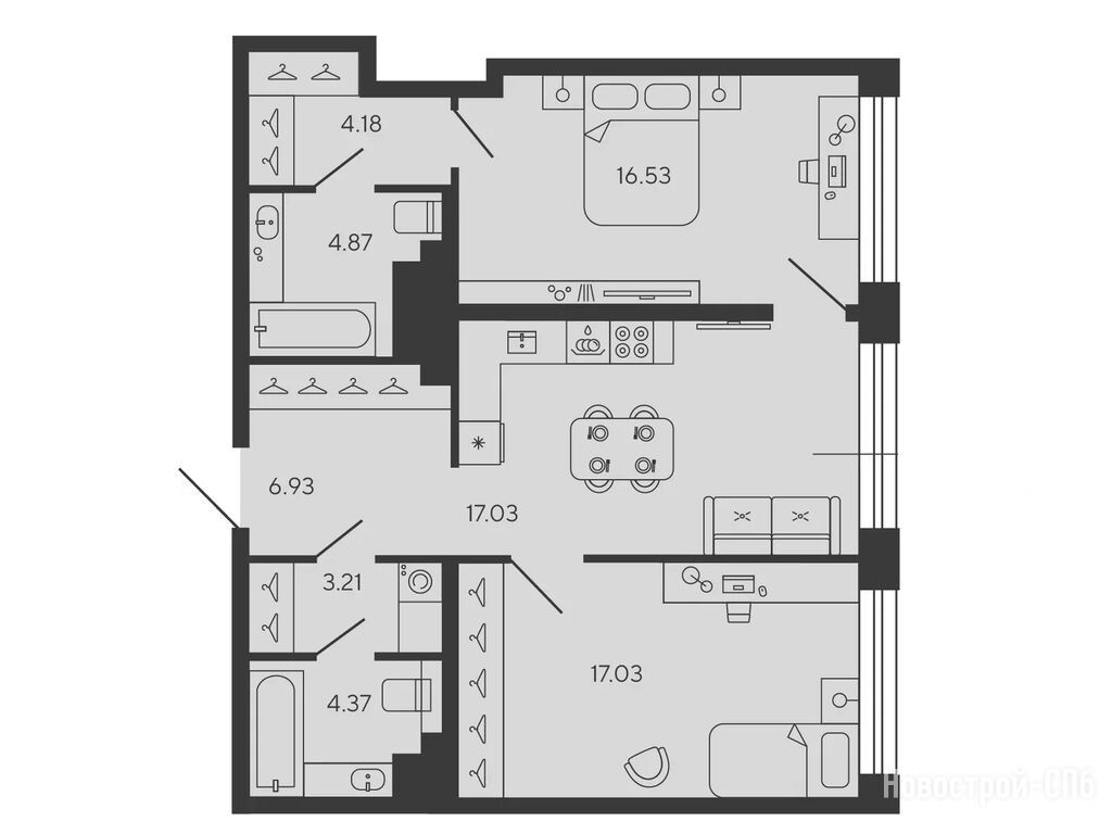Здесь несколько башен с разными типами квартир, что позволяет выбрать что-то подходящее под свои нужды.