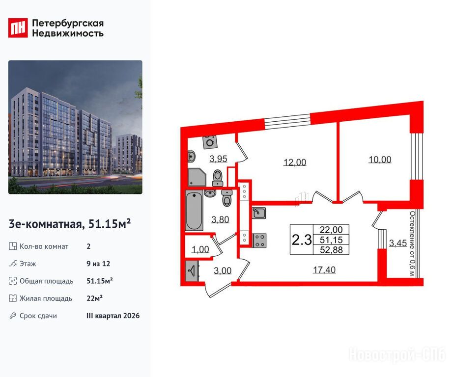 Продается двухкомнатная квартира в новостройке ЖК «Бионика Заповедная» по адресу Санкт-Петербург, Приморский, Суздальское шоссе, ЖК «Бионика Заповедная», корпус 1.4. Общая площадь квартиры - 51.15 кв. м. Тип проекта, по которому построен дом — Монолит, компания-застройщик — Setl Group (Сэтл Групп), ООО СЗ СЭТЛ РАЗВИТИЕ. Стоимость квартиры — 16 300 193 руб. Способы оплаты можно уточнить у продавца. Срок сдачи — 3 квартал 2026. Более подробная информация по телефону.