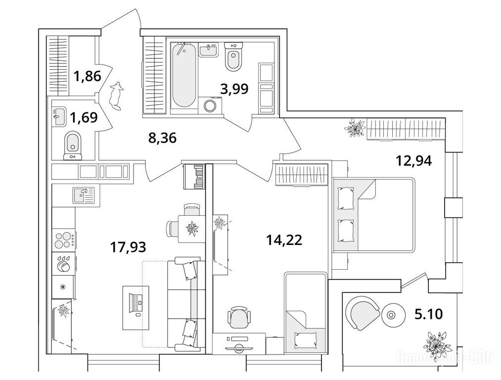 Продается двухкомнатная квартира в новостройке ЖК Cube (Куб) по адресу Санкт-Петербург, Московский, Кубинская улица, 82к3с1. Общая площадь квартиры - 63.7 кв. м. Тип проекта, по которому построен дом — Монолит, компания-застройщик — ООО «Специализированный застройщик «РСТИ-Нова», ГК РСТИ (РосСтройИнвест). Стоимость квартиры — 16 951 030 руб. Способы оплаты можно уточнить у продавца. Более подробная информация по телефону.