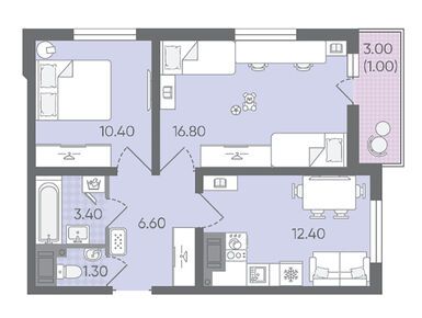 3-комн. квартира 57,30 м2 10 458 854