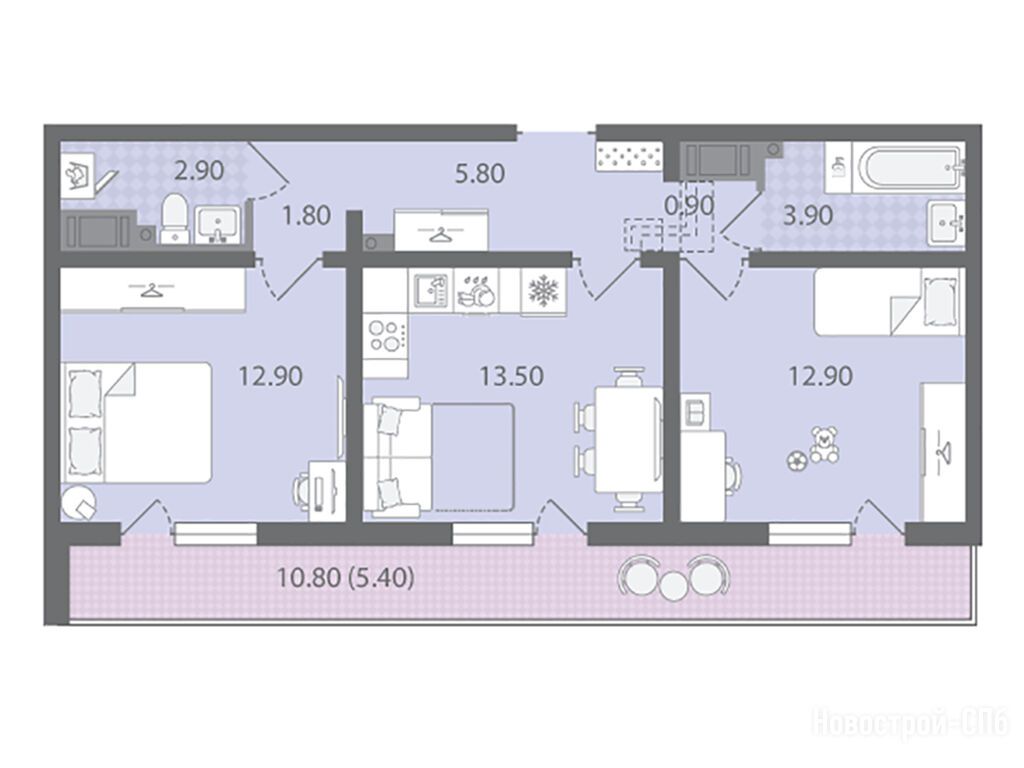 3-комн. квартира 57,40 м2 11 261 880