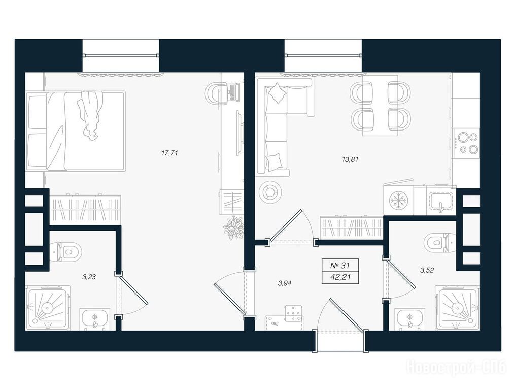 Продается двухкомнатная квартира в новостройке ЖК «Феникс Рощино» по адресу Ленинградская область, Выборгский район, Рощино, Садовый пер., 2к1. Общая площадь квартиры - 42.21 кв. м. Тип проекта, по которому построен дом — Монолитно-кирпичный, компания-застройщик — ООО СЗ ЛЕТО. Стоимость квартиры — 6 542 550 руб. Способы оплаты можно уточнить у продавца. Срок сдачи — 1 квартал 2027. Более подробная информация по телефону.