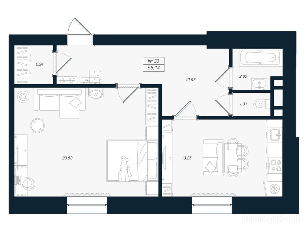 Продается двухкомнатная квартира в новостройке ЖК «Феникс Рощино» по адресу Ленинградская область, Выборгский район, Рощино, Садовый пер., 2к1. Общая площадь квартиры - 56.14 кв. м. Тип проекта, по которому построен дом — Монолитно-кирпичный, компания-застройщик — ООО СЗ ЛЕТО. Стоимость квартиры — 8 701 700 руб. Способы оплаты можно уточнить у продавца. Срок сдачи — 1 квартал 2027. Более подробная информация по телефону.