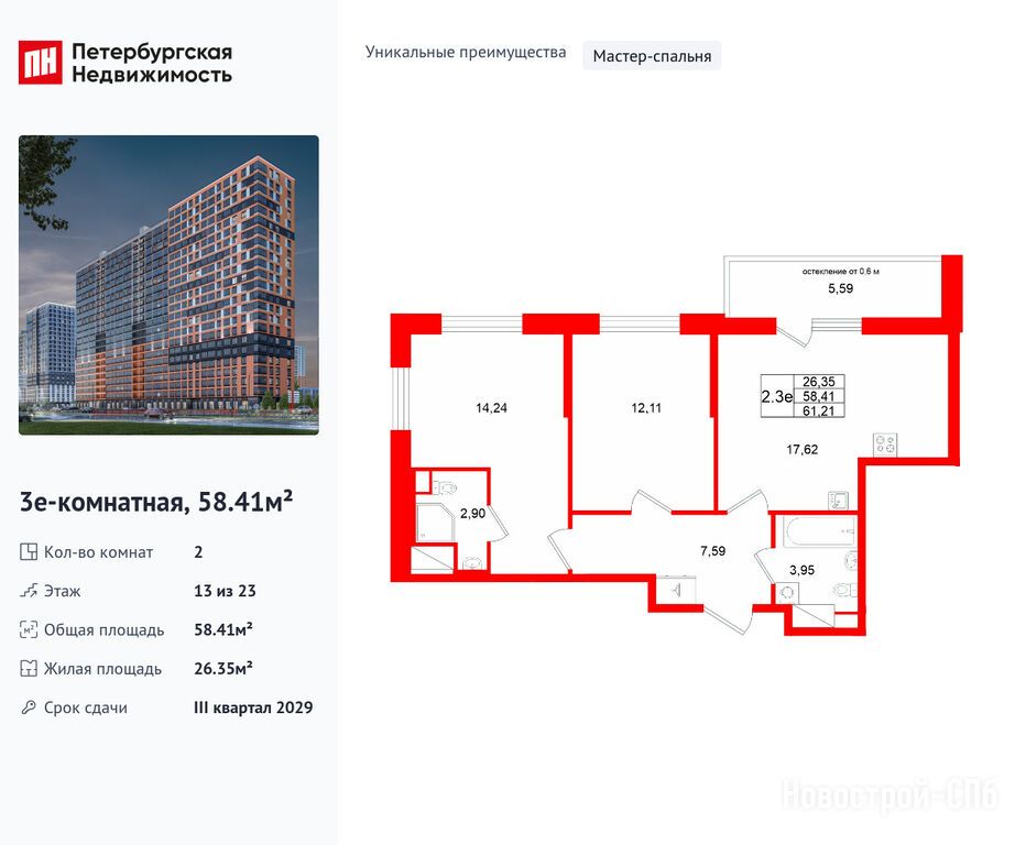 Продается двухкомнатная квартира в новостройке ЖК «Город звёзд» по адресу Ленинградская область, Всеволожский район, Поселок им. Свердлова, Новосаратовка дер., ул. Рабочая. Общая площадь квартиры - 58.41 кв. м. Тип проекта, по которому построен дом — Монолитно-кирпичный, компания-застройщик — Setl Group (Сэтл Групп). Стоимость квартиры — 9 600 034 руб. Способы оплаты можно уточнить у продавца. Срок сдачи — 3 квартал 2029. Более подробная информация по телефону.