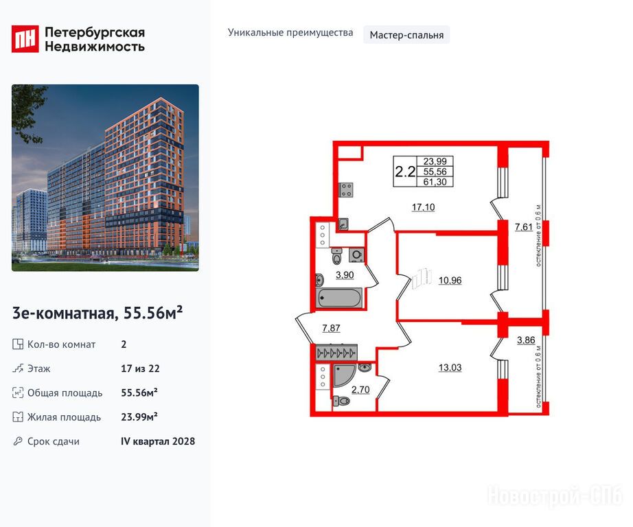 Продается двухкомнатная квартира в новостройке ЖК «Город звёзд» по адресу Ленинградская область, Всеволожский район, Поселок им. Свердлова, Новосаратовка дер., ул. Рабочая. Общая площадь квартиры - 55.56 кв. м. Тип проекта, по которому построен дом — Монолитно-кирпичный, компания-застройщик — Setl Group (Сэтл Групп). Стоимость квартиры — 9 250 157 руб. Способы оплаты можно уточнить у продавца. Срок сдачи — 4 квартал 2028. Более подробная информация по телефону.