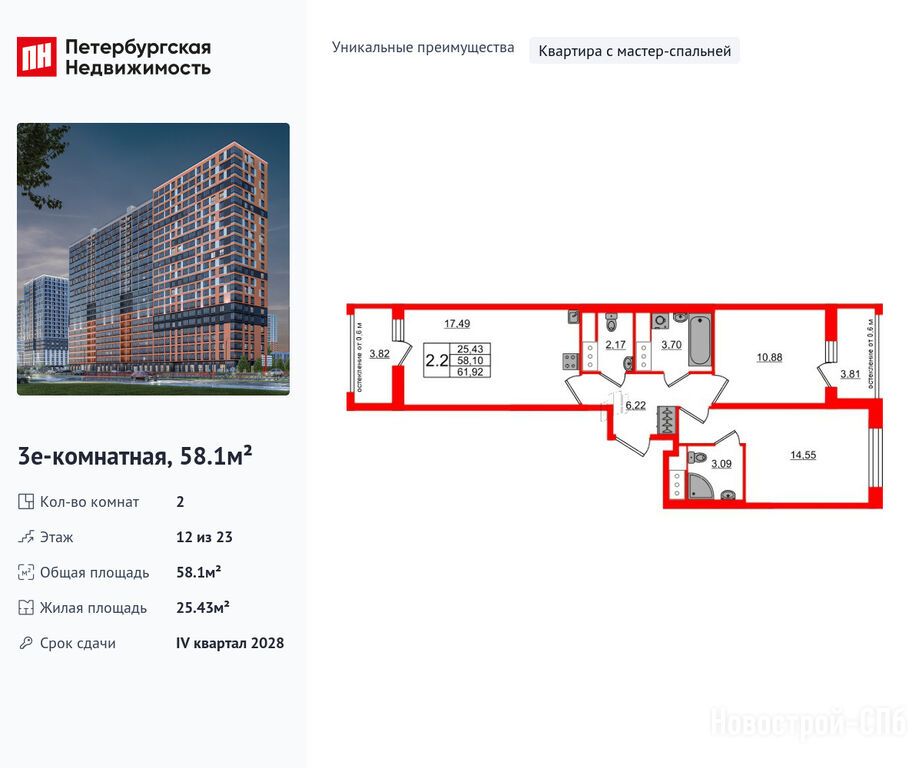 Продается двухкомнатная квартира в новостройке ЖК «Город звёзд» по адресу Ленинградская область, Всеволожский район, Поселок им. Свердлова, Новосаратовка дер., ул. Рабочая. Общая площадь квартиры - 58.1 кв. м. Тип проекта, по которому построен дом — Монолитно-кирпичный, компания-застройщик — Setl Group (Сэтл Групп). Стоимость квартиры — 10 150 099 руб. Способы оплаты можно уточнить у продавца. Срок сдачи — 4 квартал 2028. Более подробная информация по телефону.