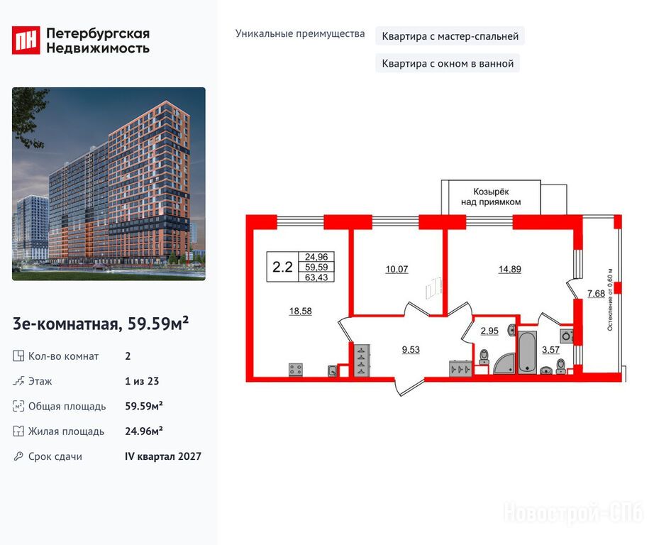 Продается двухкомнатная квартира в новостройке ЖК «Город звёзд» по адресу Ленинградская область, Всеволожский район, Поселок им. Свердлова, Новосаратовка дер., ЖК «Город звезд», корпус 8. Общая площадь квартиры - 59.59 кв. м. Тип проекта, по которому построен дом — Монолитно-кирпичный, компания-застройщик — Setl Group (Сэтл Групп). Стоимость квартиры — 9 850 197 руб. Способы оплаты можно уточнить у продавца. Срок сдачи — 4 квартал 2027. Более подробная информация по телефону.