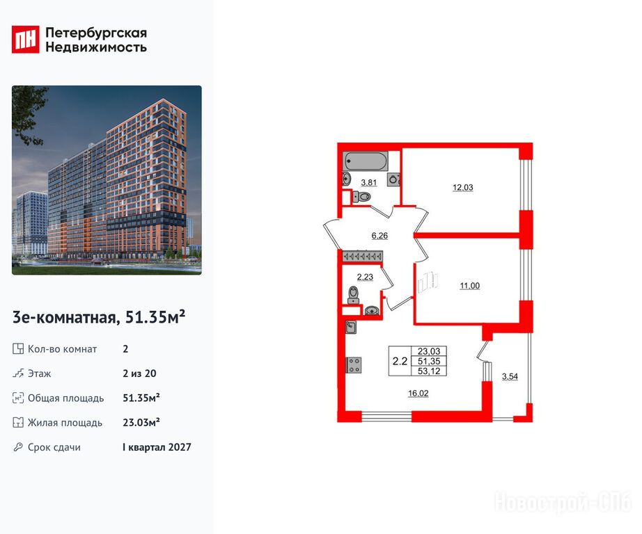 Продается двухкомнатная квартира в новостройке ЖК «Город звёзд» по адресу Ленинградская область, Всеволожский район, Поселок им. Свердлова, Новосаратовка дер., ЖК «Город звезд», корпус 5.2. Общая площадь квартиры - 51.35 кв. м. Тип проекта, по которому построен дом — Монолитно-кирпичный, компания-застройщик — Setl Group (Сэтл Групп). Стоимость квартиры — 8 950 444 руб. Способы оплаты можно уточнить у продавца. Срок сдачи — 1 квартал 2027. Более подробная информация по телефону.