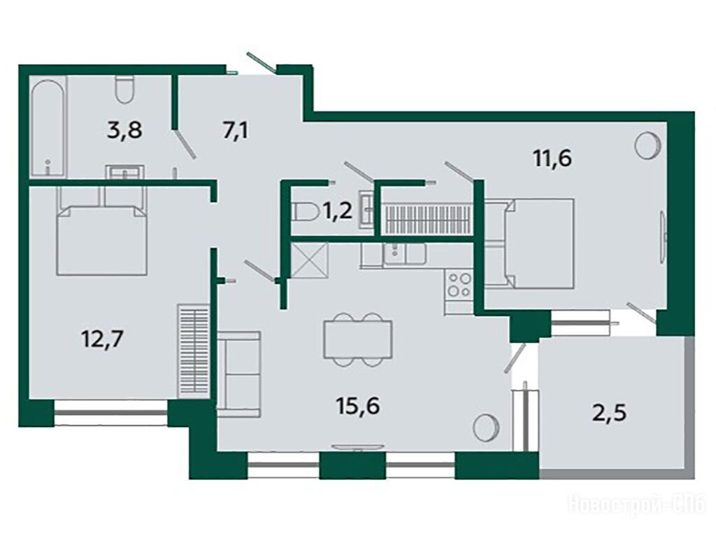 Расположение 2-комн. квартиры