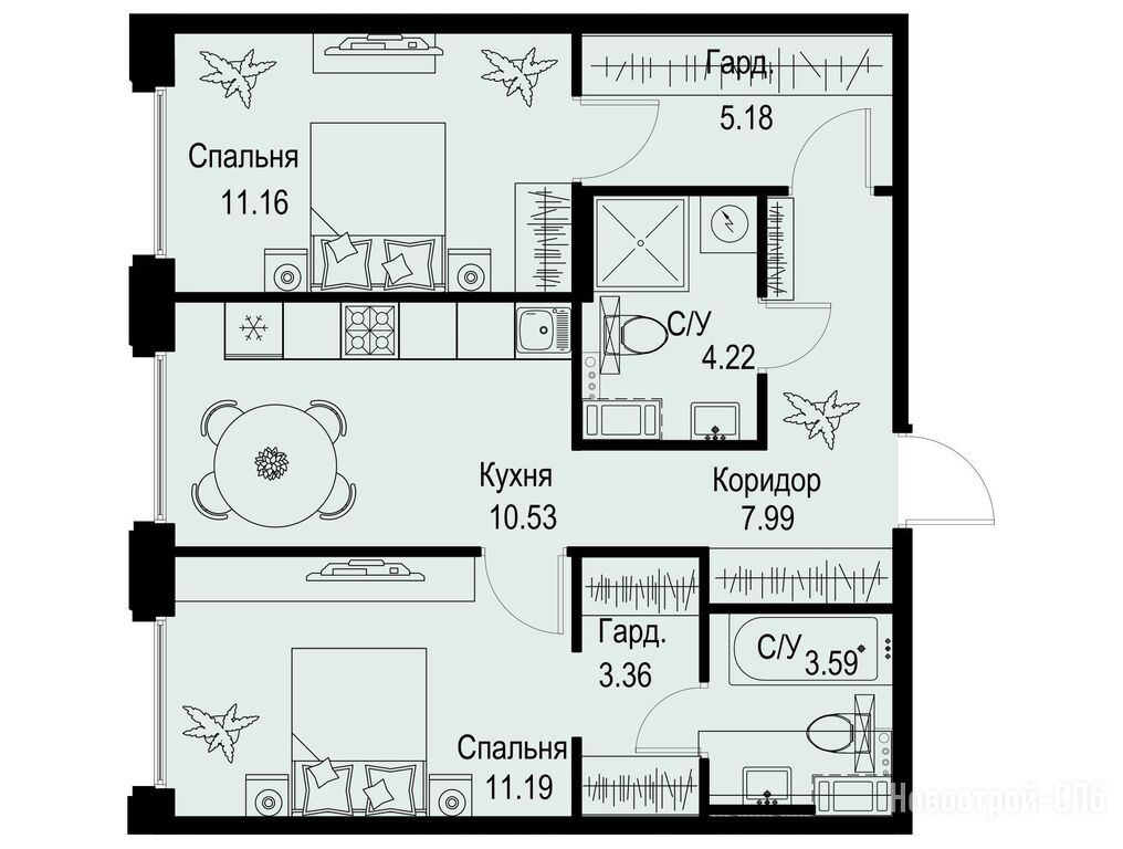 Разнообразие отличное, а количество квартир на каждом этаже небольшое, так что квартал не станет перегруженным. Помещения общего пользования, представленные на презентации, выглядят очень стильно и дорого.