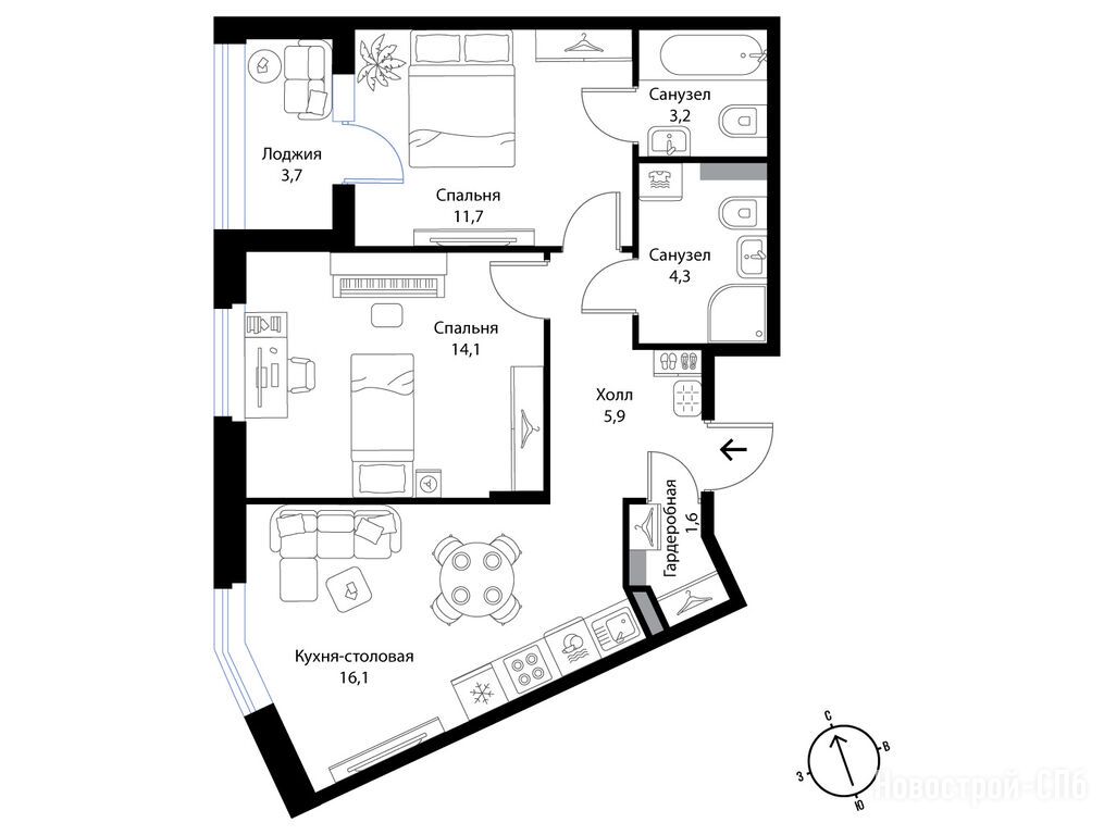 Продается двухкомнатная квартира в новостройке ЖК «Экография» по адресу Ленинградская область, Ломоносовский район, Вишнёвая улица, ЖК «Экография», корпус 3. Общая площадь квартиры - 58.8 кв. м. Тип проекта, по которому построен дом — Монолитно-кирпичный, компания-застройщик — Охта Групп. Стоимость квартиры — 13 973 820 руб. Способы оплаты можно уточнить у продавца. Срок сдачи — 1 квартал 2026. Более подробная информация по телефону.