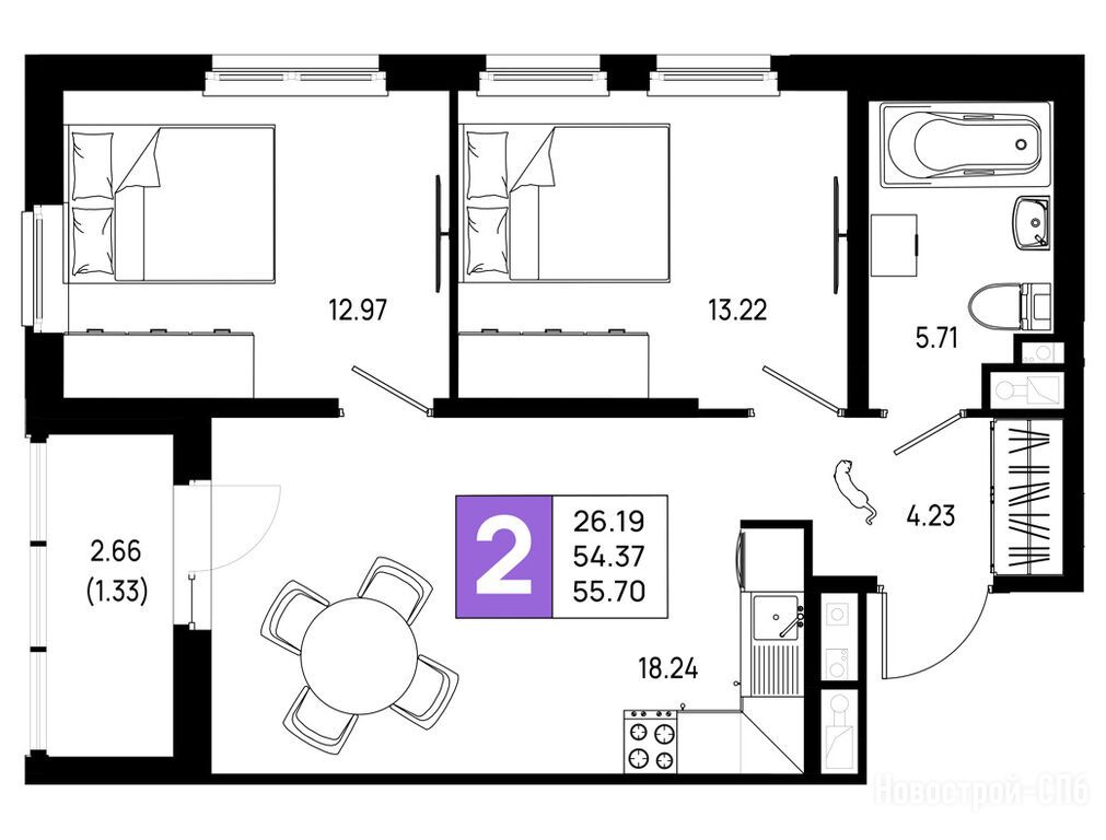 Продается двухкомнатная квартира в новостройке ЖК «Имена» по адресу Ленинградская область, Всеволожский район, Поселок им. Свердлова, Новосаратовка дер., ЖК «Имена». Общая площадь квартиры - 55.7 кв. м. Тип проекта, по которому построен дом — Монолитно-кирпичный, компания-застройщик — ГК «ССК», СЗ «АСД-Консалт». Стоимость квартиры — 8 076 500 руб. Способы оплаты можно уточнить у продавца. Срок сдачи — 2 квартал 2028. Более подробная информация по телефону.