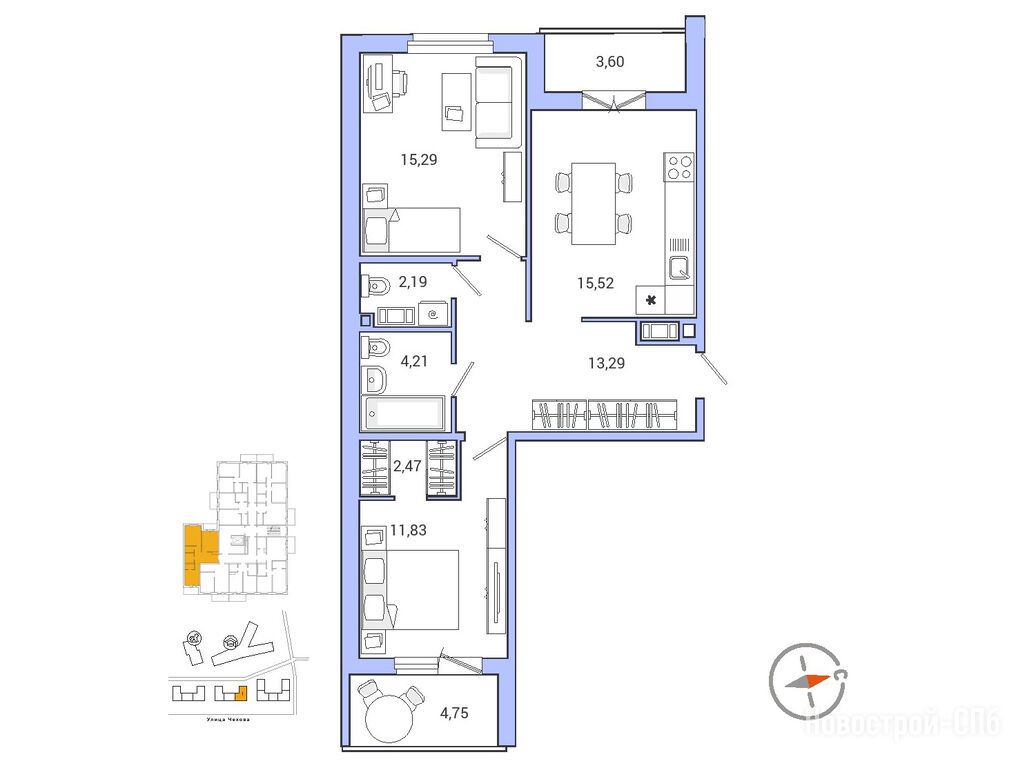 Продается двухкомнатная квартира в новостройке ЖК «IQ Гатчина» по адресу Ленинградская область, Гатчинский район, Гатчина, Пушкинское шоссе, д. 15, корп. 1-6. Общая площадь квартиры - 69.4 кв. м. Тип проекта, по которому построен дом — Панельный, компания-застройщик — ООО «ЛСТ Гатчина». Стоимость квартиры — 11 464 880 руб. Способы оплаты можно уточнить у продавца. Более подробная информация по телефону.