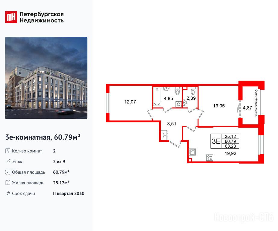 Продается двухкомнатная квартира в новостройке ЖК «Кристалл Холл» по адресу Санкт-Петербург, Адмиралтейский, Рижский проспект, 26Б, корпус 1. Общая площадь квартиры - 60.79 кв. м. Тип проекта, по которому построен дом — Монолитно-кирпичный, компания-застройщик — Setl Group (Сэтл Групп), СЗ «Рижский 26». Стоимость квартиры — 36 656 370 руб. Способы оплаты можно уточнить у продавца. Срок сдачи — 2 квартал 2030. Более подробная информация по телефону.
