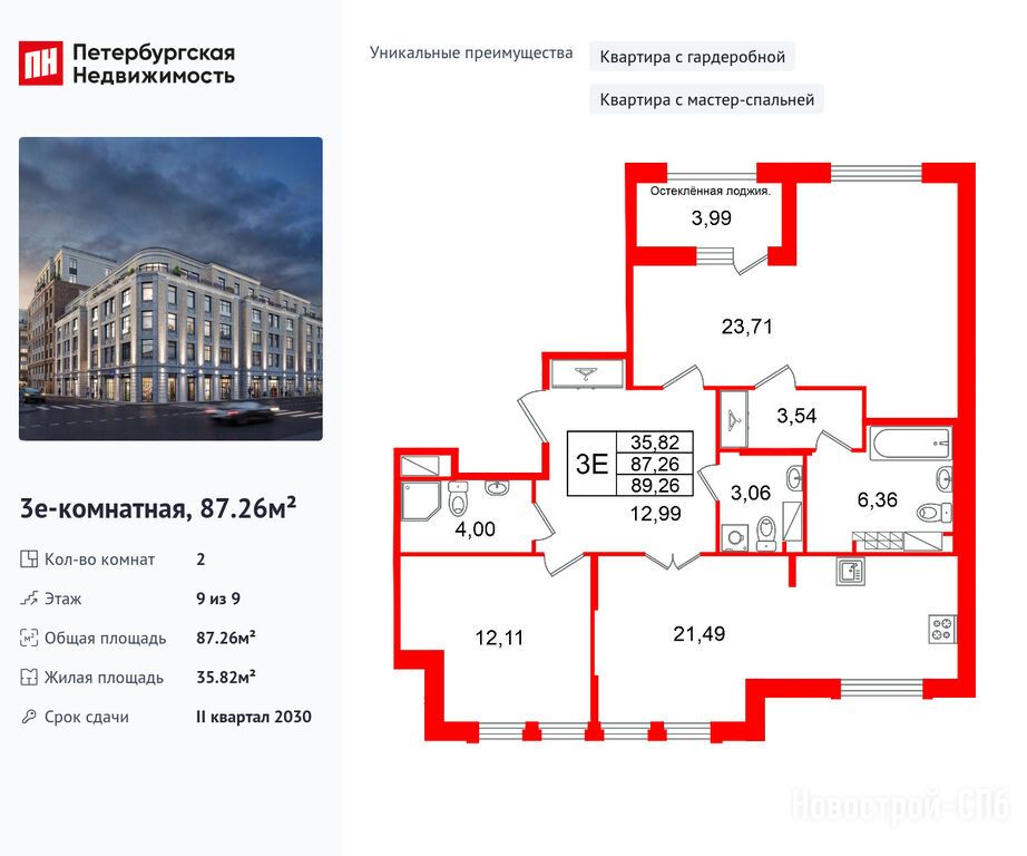 Продается двухкомнатная квартира в новостройке ЖК «Кристалл Холл» по адресу Санкт-Петербург, Адмиралтейский, Рижский проспект, 26Б, корпус 1. Общая площадь квартиры - 87.26 кв. м. Тип проекта, по которому построен дом — Монолитно-кирпичный, компания-застройщик — Setl Group (Сэтл Групп), СЗ «Рижский 26». Стоимость квартиры — 52 617 780 руб. Способы оплаты можно уточнить у продавца. Срок сдачи — 2 квартал 2030. Более подробная информация по телефону.
