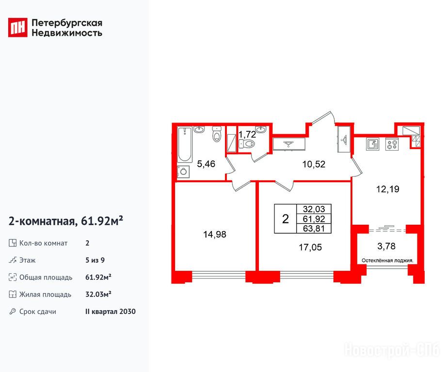 Продается двухкомнатная квартира в новостройке ЖК «Кристалл Холл» по адресу Санкт-Петербург, Адмиралтейский, Рижский проспект, 26Б, корпус 1. Общая площадь квартиры - 61.92 кв. м. Тип проекта, по которому построен дом — Монолитно-кирпичный, компания-застройщик — Setl Group (Сэтл Групп), СЗ «Рижский 26». Стоимость квартиры — 34 551 360 руб. Способы оплаты можно уточнить у продавца. Срок сдачи — 2 квартал 2030. Более подробная информация по телефону.