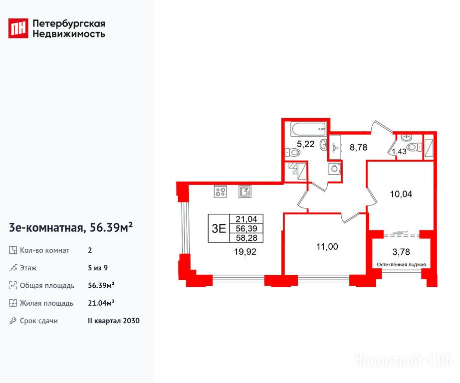 Продается двухкомнатная квартира в новостройке ЖК «Кристалл Холл» по адресу Санкт-Петербург, Адмиралтейский, Рижский проспект, 26Б, корпус 1. Общая площадь квартиры - 56.39 кв. м. Тип проекта, по которому построен дом — Монолитно-кирпичный, компания-застройщик — Setl Group (Сэтл Групп), СЗ «Рижский 26». Стоимость квартиры — 33 495 660 руб. Способы оплаты можно уточнить у продавца. Срок сдачи — 2 квартал 2030. Более подробная информация по телефону.