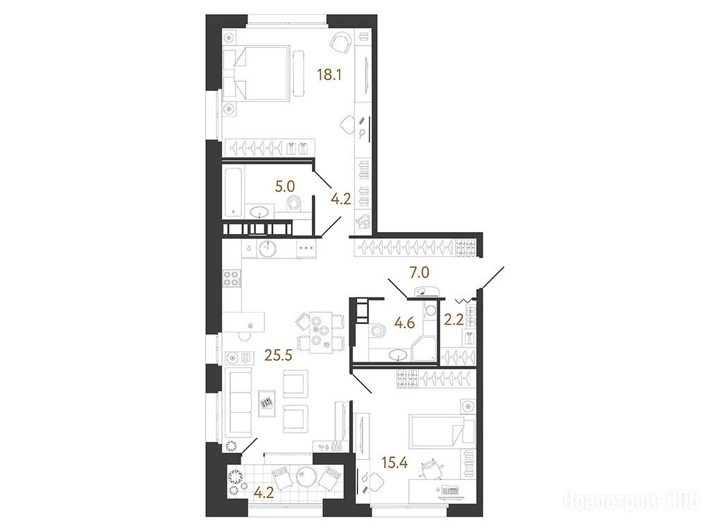 3-комн. квартира 86,20 м2 34 126 433