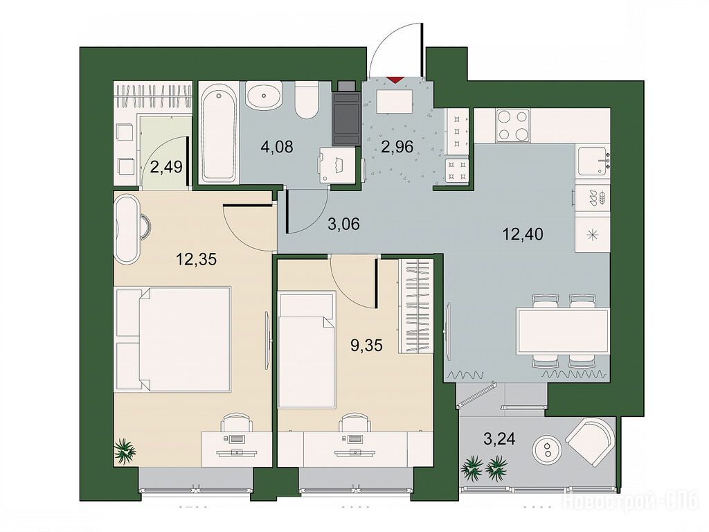 Продается двухкомнатная квартира в новостройке ЖК «Квартал Уютный» по адресу Ленинградская область, Ломоносовский район, Аннинское, Новоселье пос., ул. Парадная. Общая площадь квартиры - 48.31 кв. м. Тип проекта, по которому построен дом — Монолитно-кирпичный, компания-застройщик — Novoselie Development. Стоимость квартиры — 7 678 747 руб. Способы оплаты можно уточнить у продавца. Срок сдачи — 3 квартал 2027. Более подробная информация по телефону.